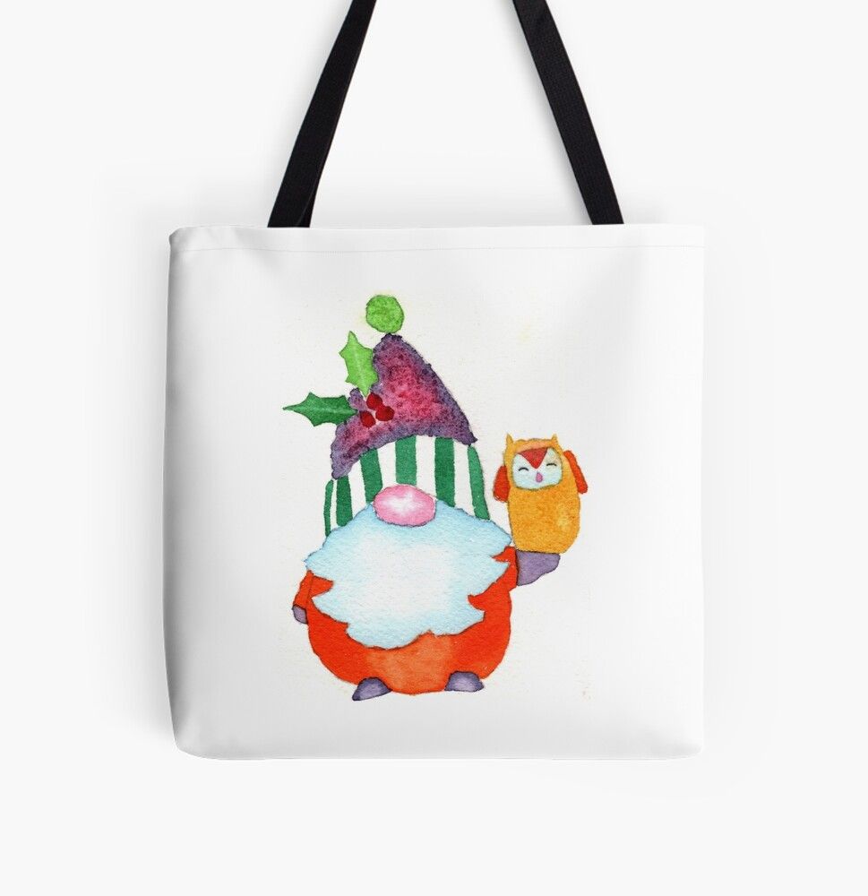 This is an adorable, plump gnome with a bunch of berries and holly in his hat and is holding an owl.